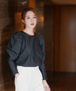 PDD Denim Puff-sleeved Top