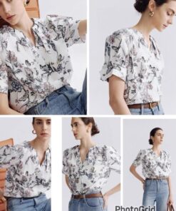 LC floral pleat-sleeved top