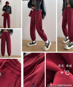 Mc fleece leather logo pants