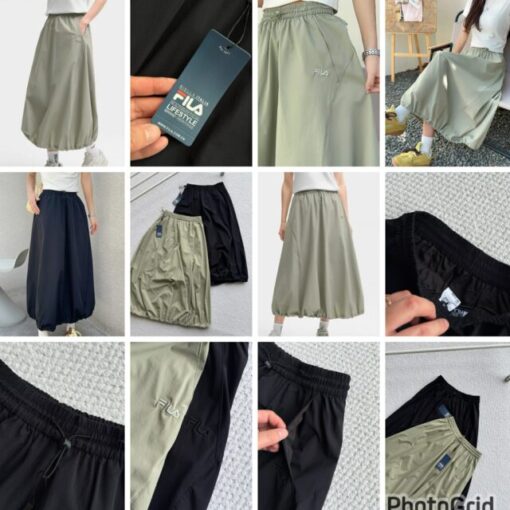 FILA 梭織裙 Khaki Black 2026夏季新款 索繩花苞雲朵傘裙 裙型顯瘦遮肉 有袋 面料順滑光澤度好 特別垂順,不易起褶 拼接設計