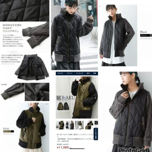 S$350 冬款KOhAKU knit sleeved quilted coat Khaki Grey 一萬多yen S40 B120 L66cm