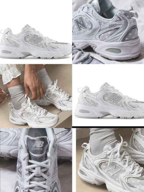 NB530 white x metallic silver polka dot